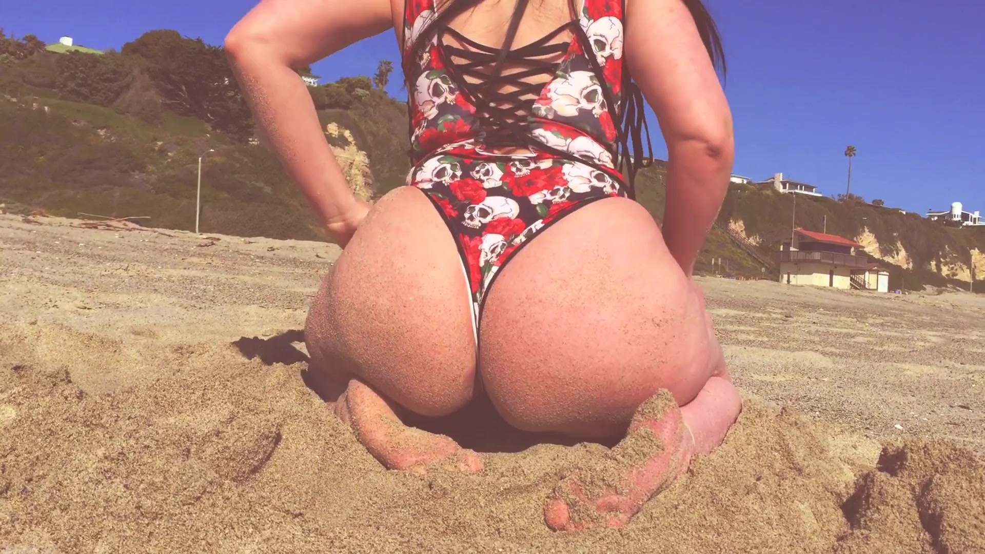 Luscious Lopez blonde hairstyle fingering shaved cunt
