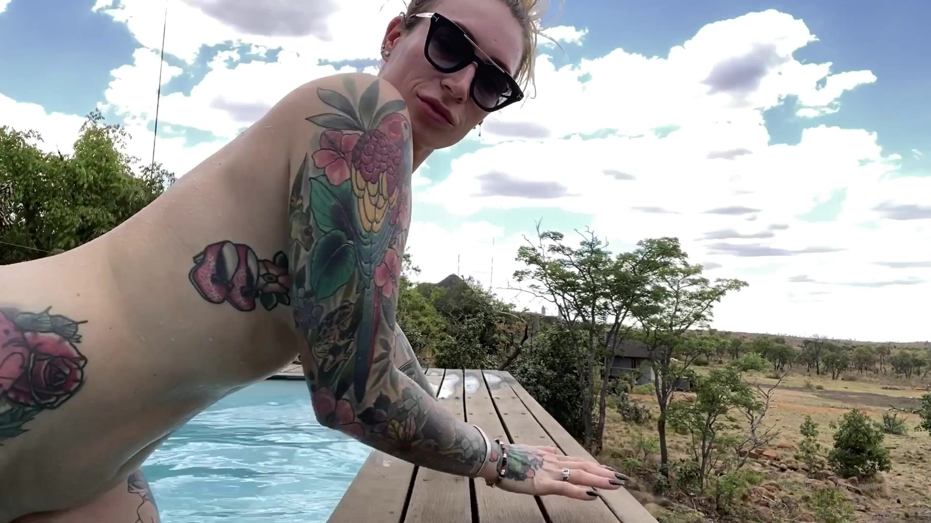 ava_austen pretty chick fucks pussy with black dildo