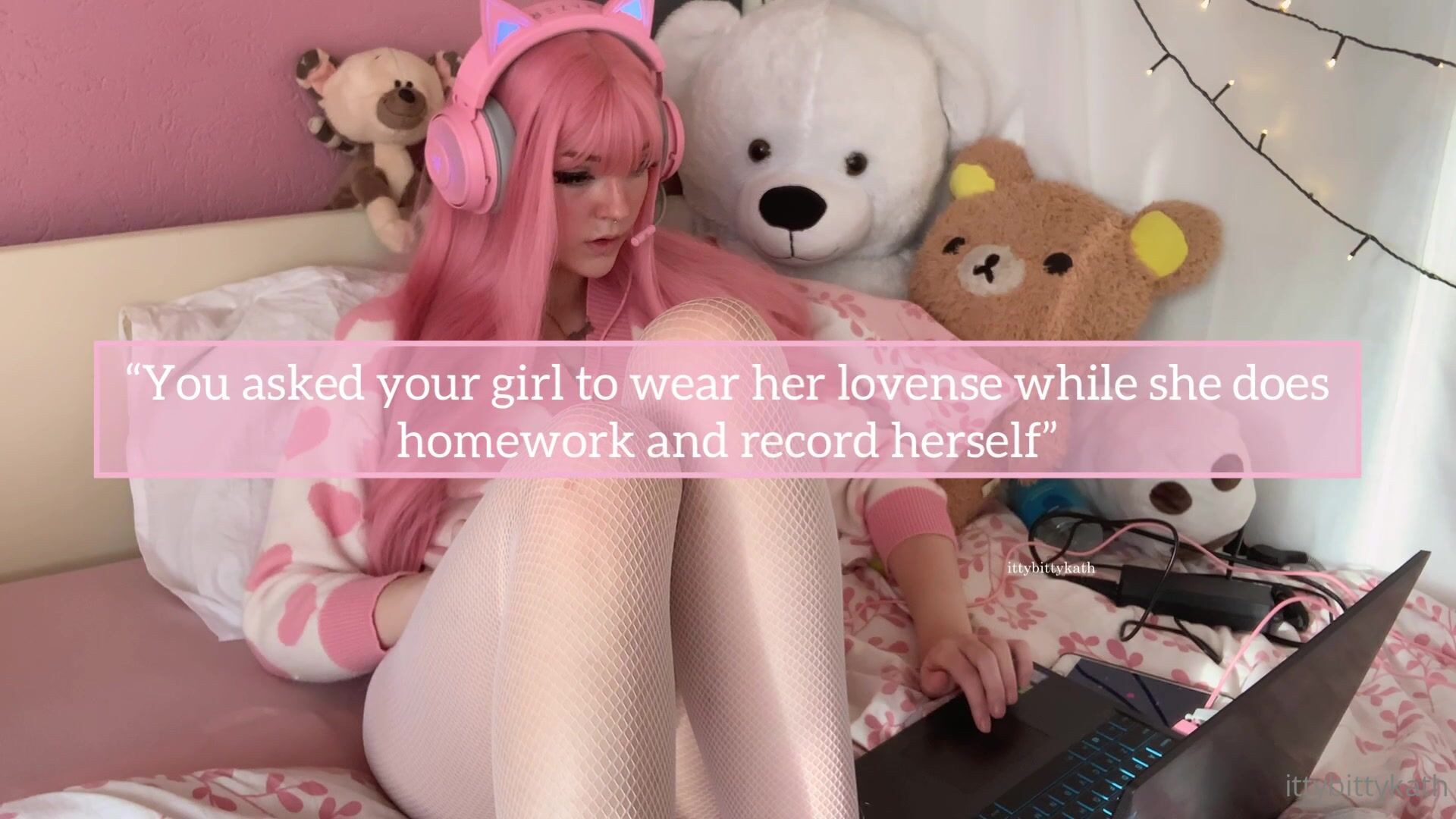 Feya Fern (feyafern aka Ittybittykath) onlyfans Cute babe in stockings massages vagina with hand