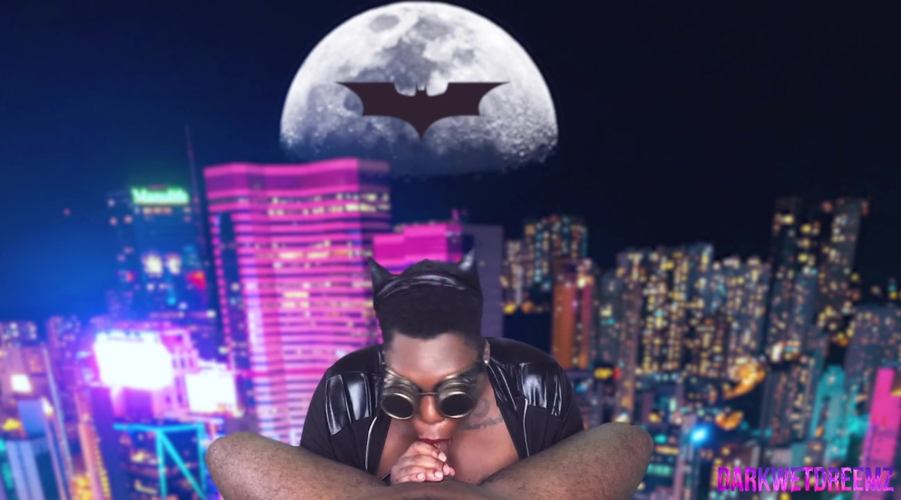EBONY CATWOMAN gorgeous confused caresses pussy